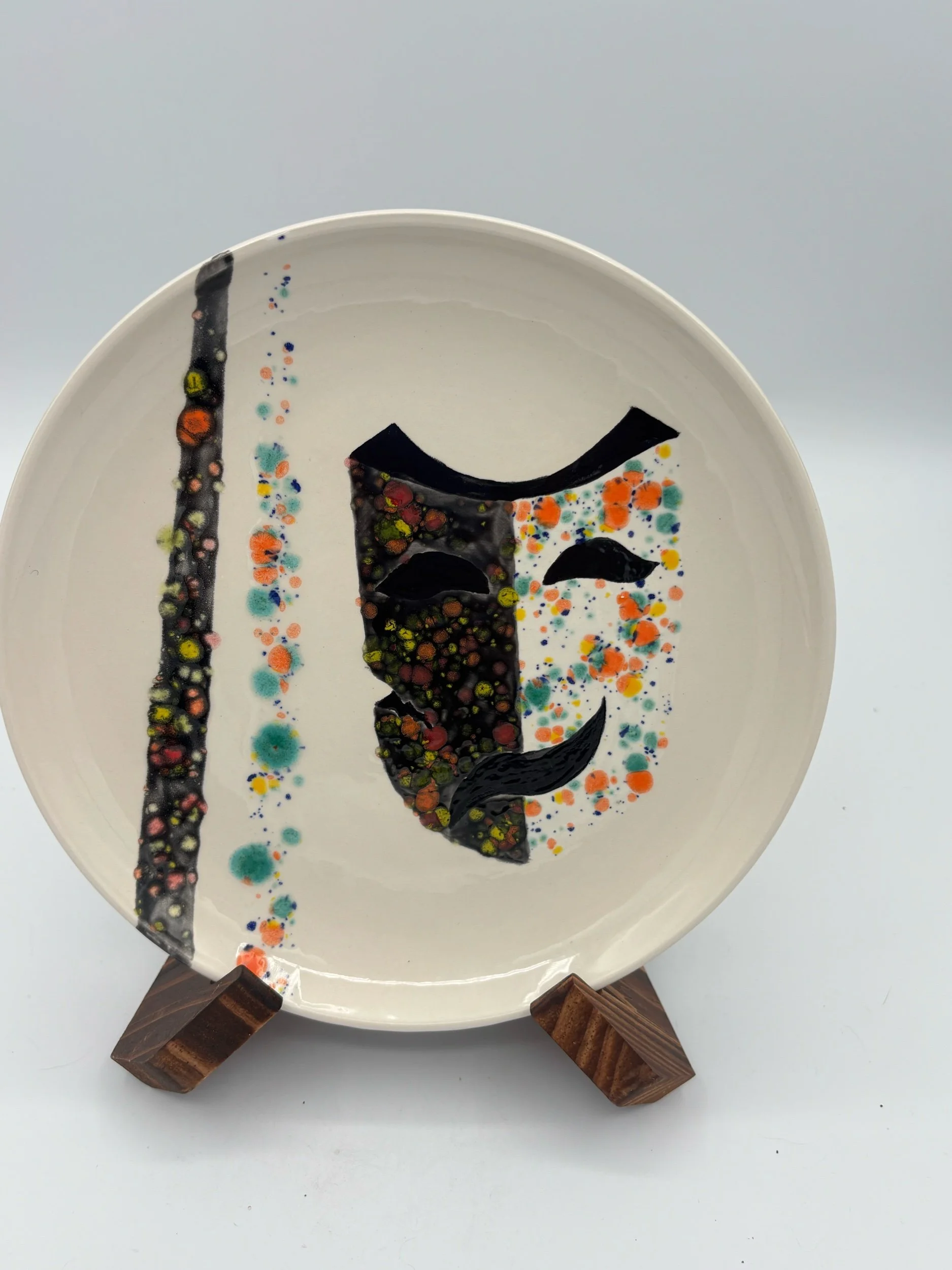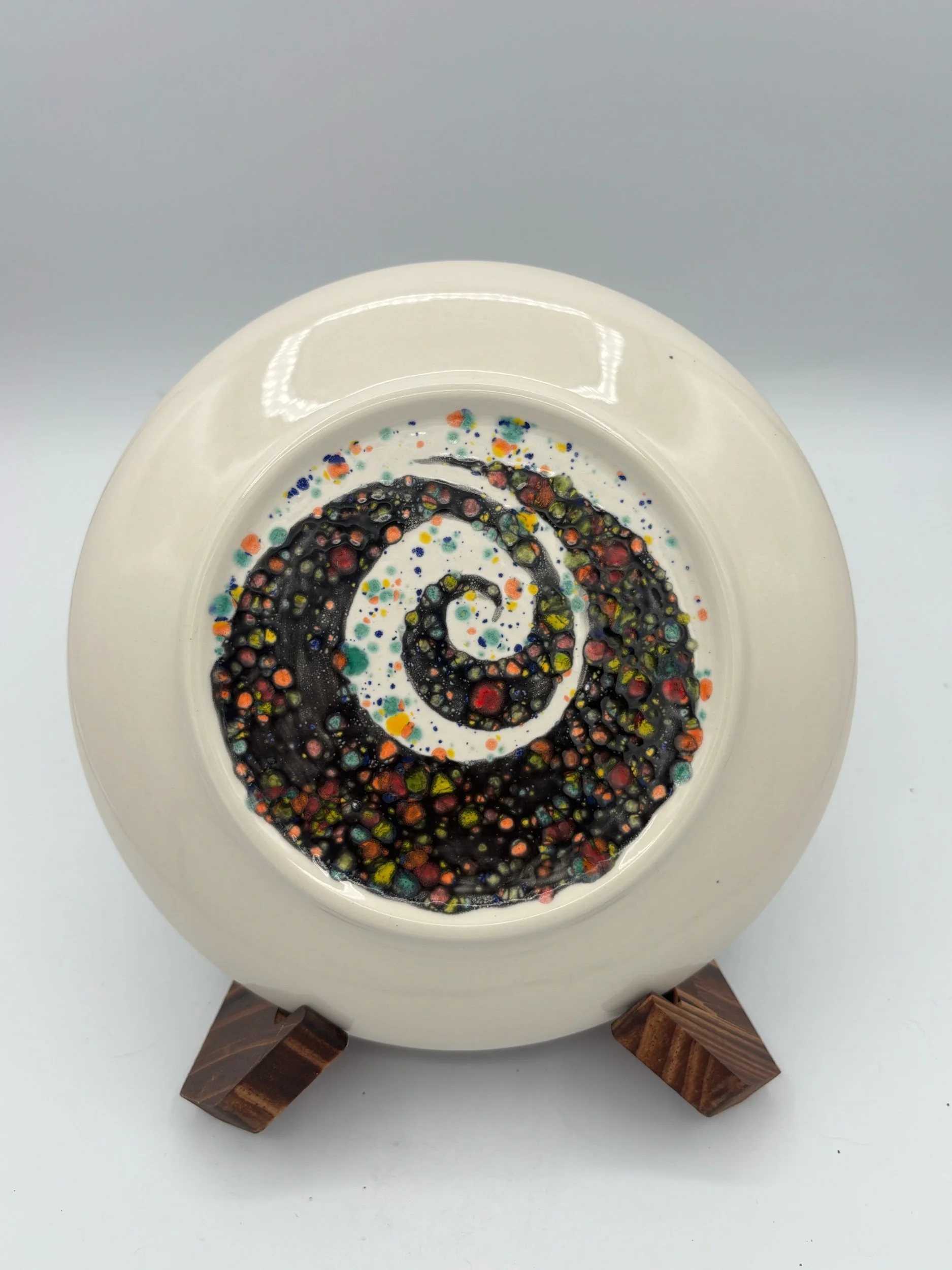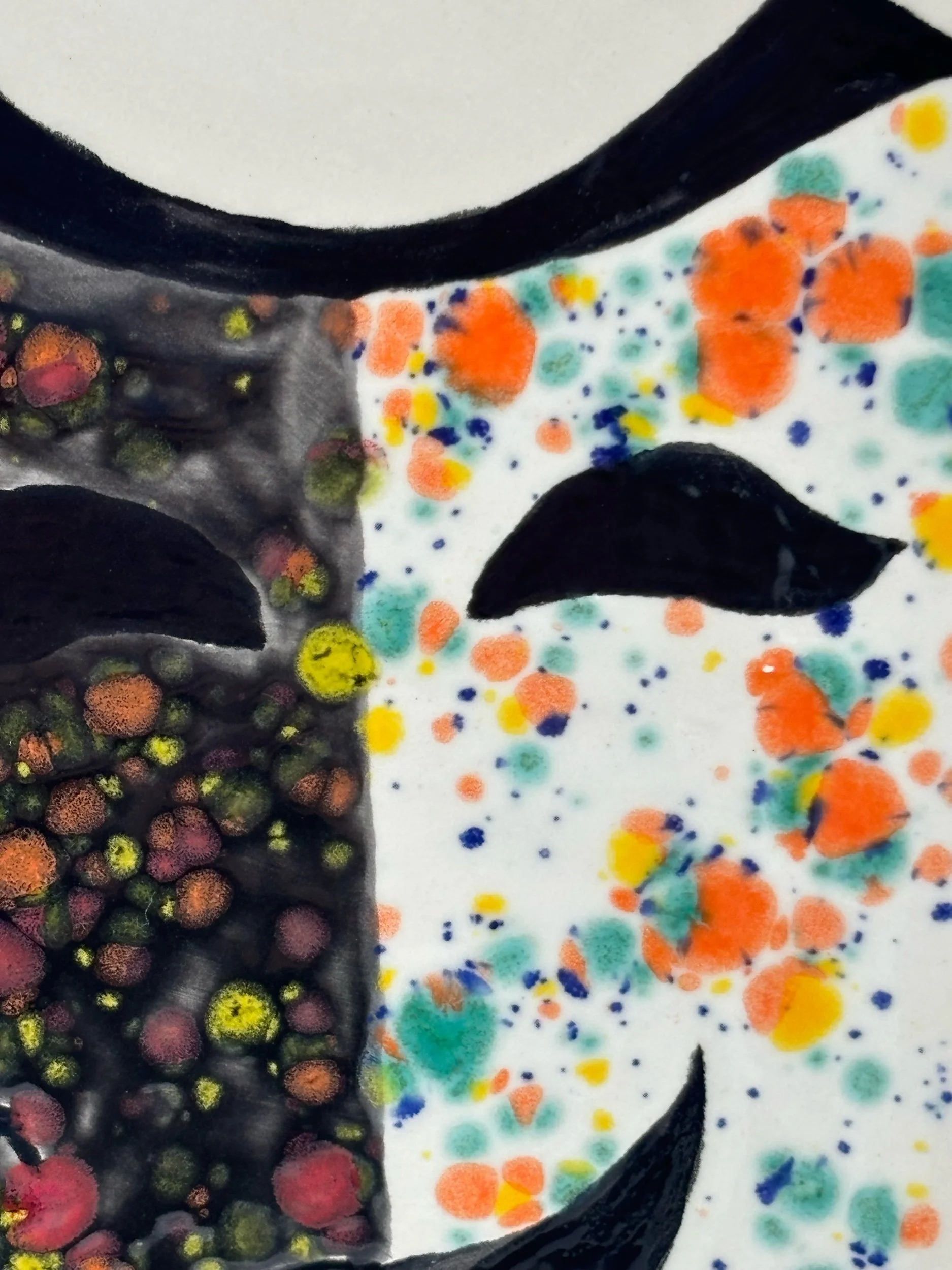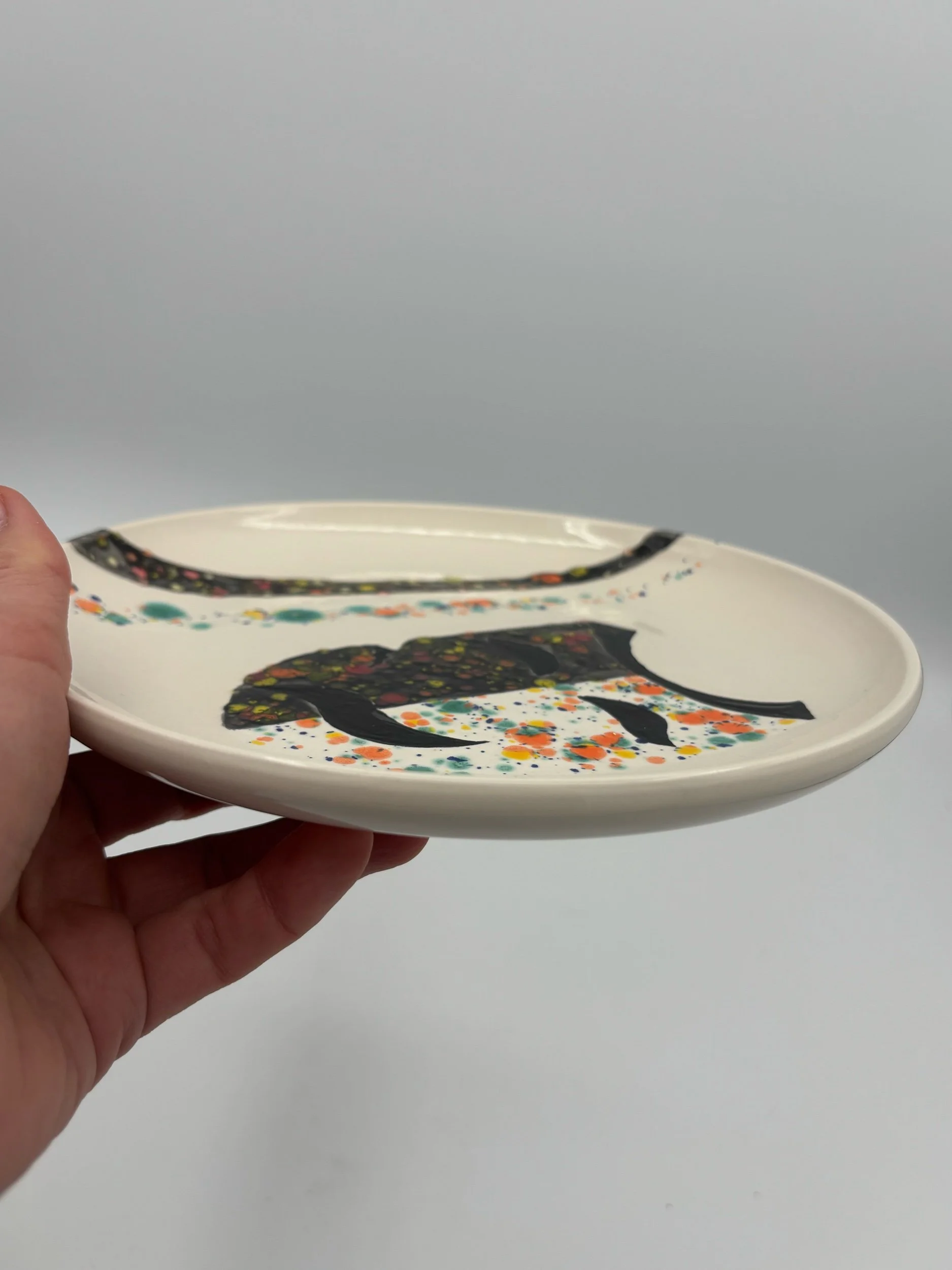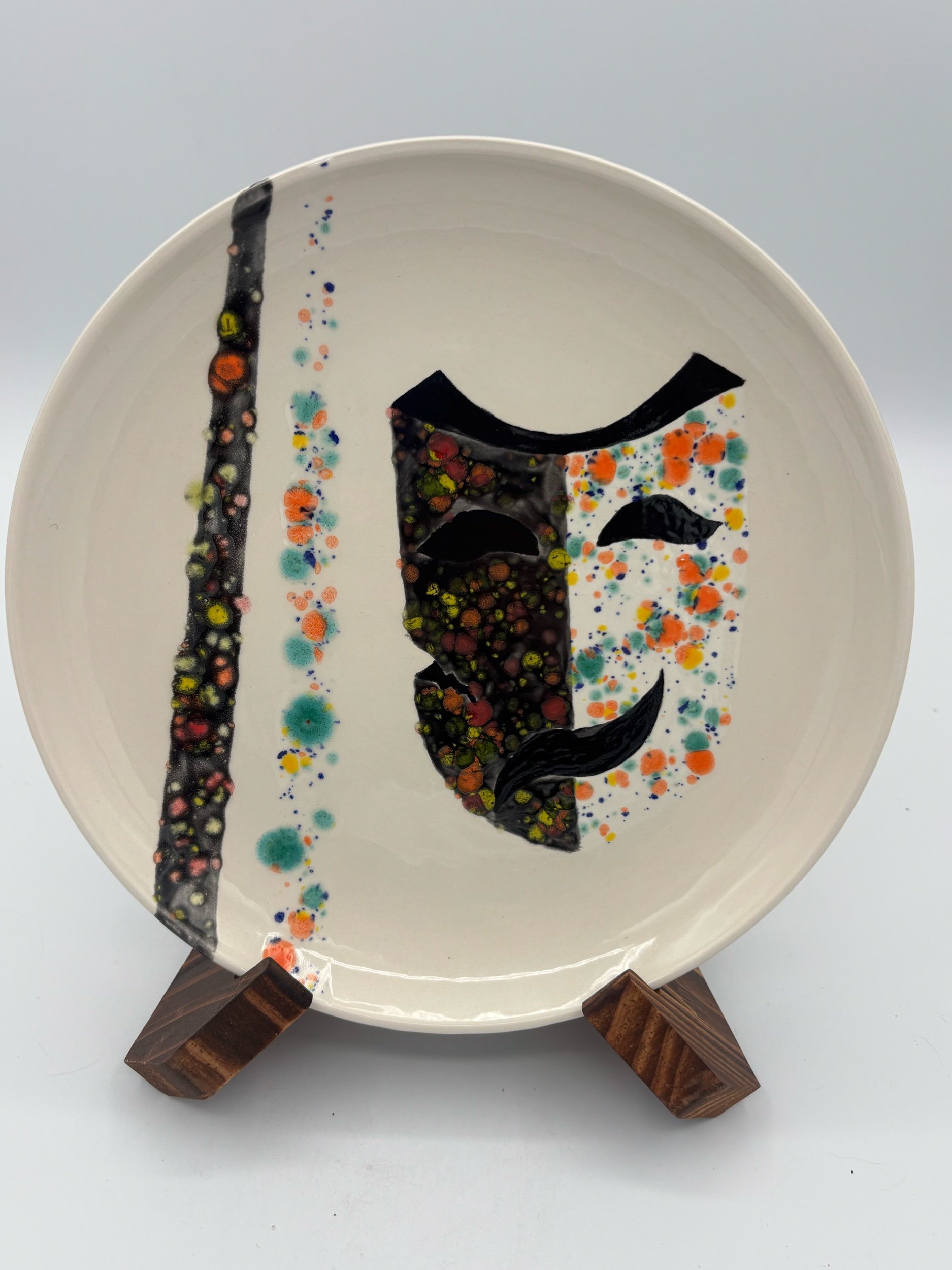 Porcelain Plate — a contemporary artwork on porcelain, combining bold contrasts, organic patterns, and painterly expression.  One-of-a-kind, food-safe, dishwasher and microwave safe. Functional art for everyday use.