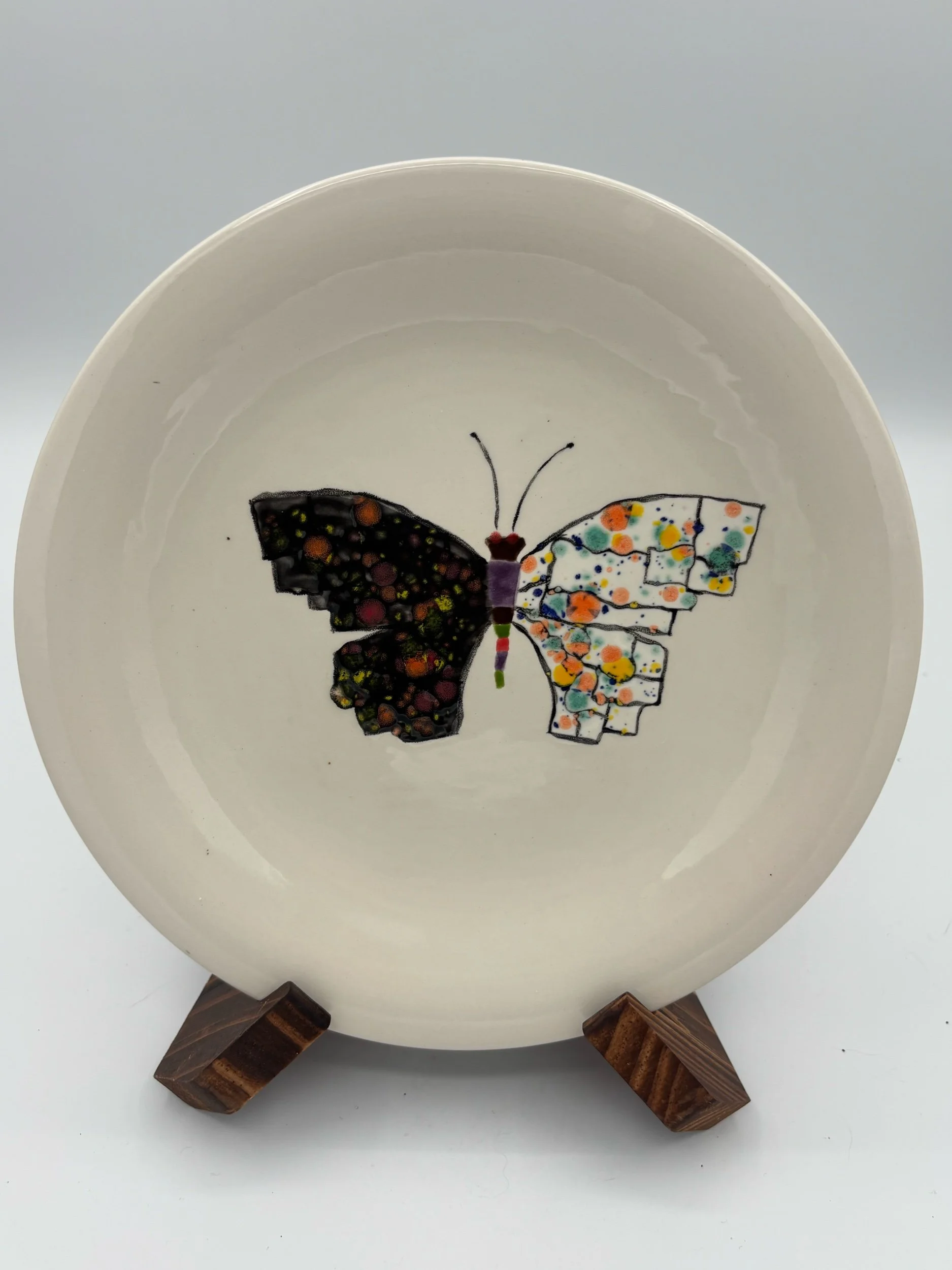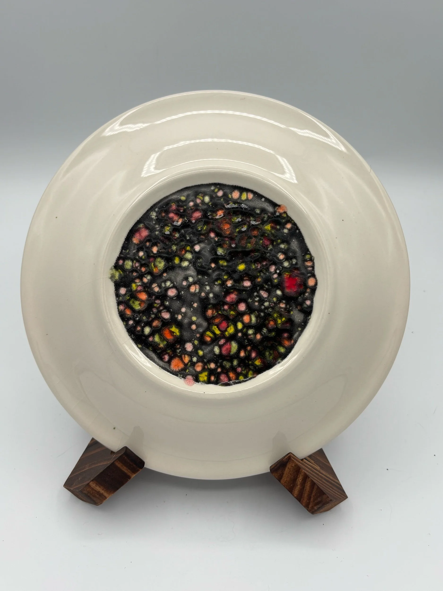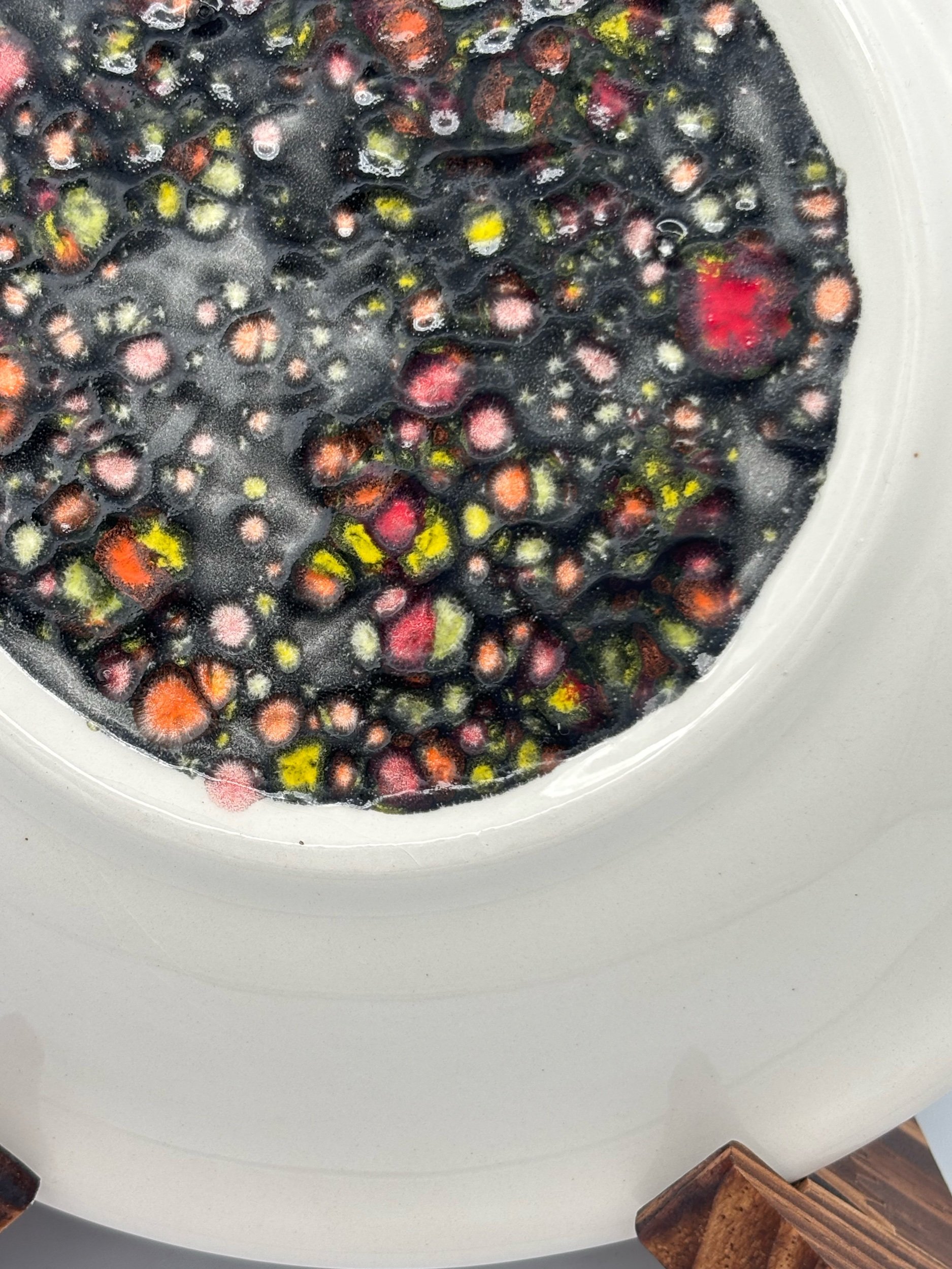 Porcelain Plate — a contemporary artwork on porcelain, combining bold contrasts, organic patterns, and painterly expression. One-of-a-kind, food-safe, dishwasher and microwave safe. Functional art for everyday use.